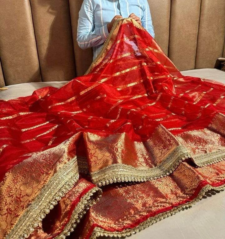 Super Trending Banarasi Border Blouse Design With Lace Work