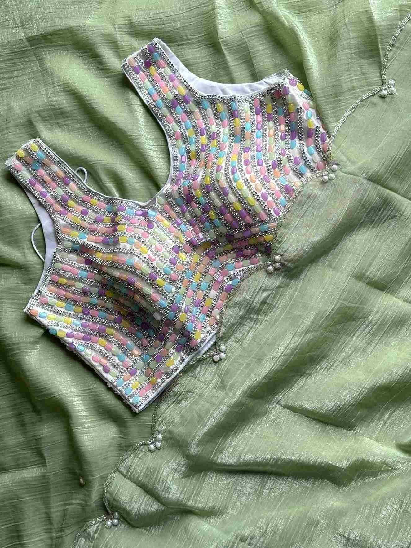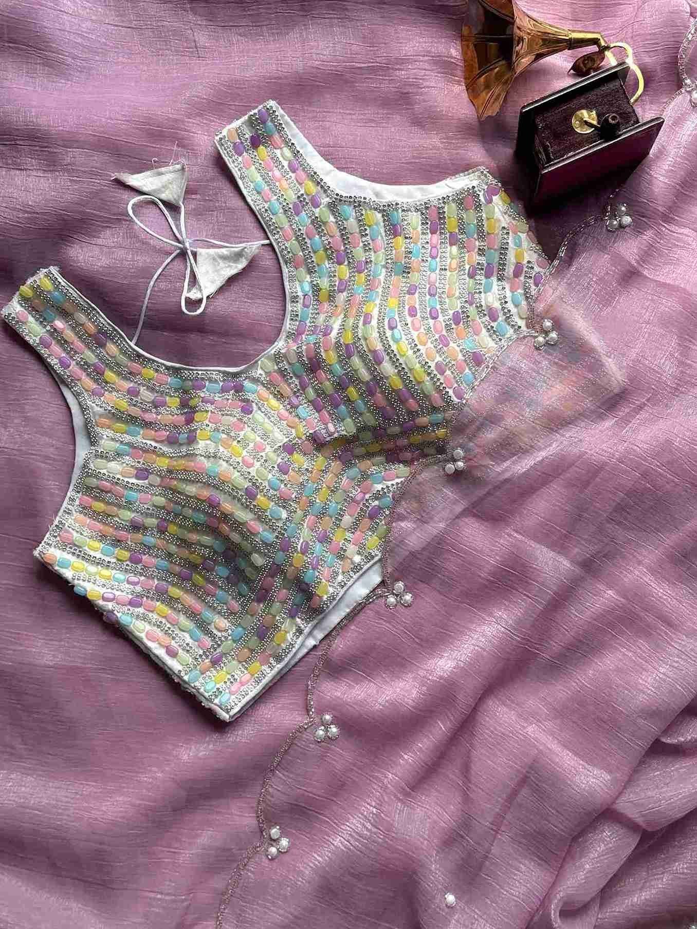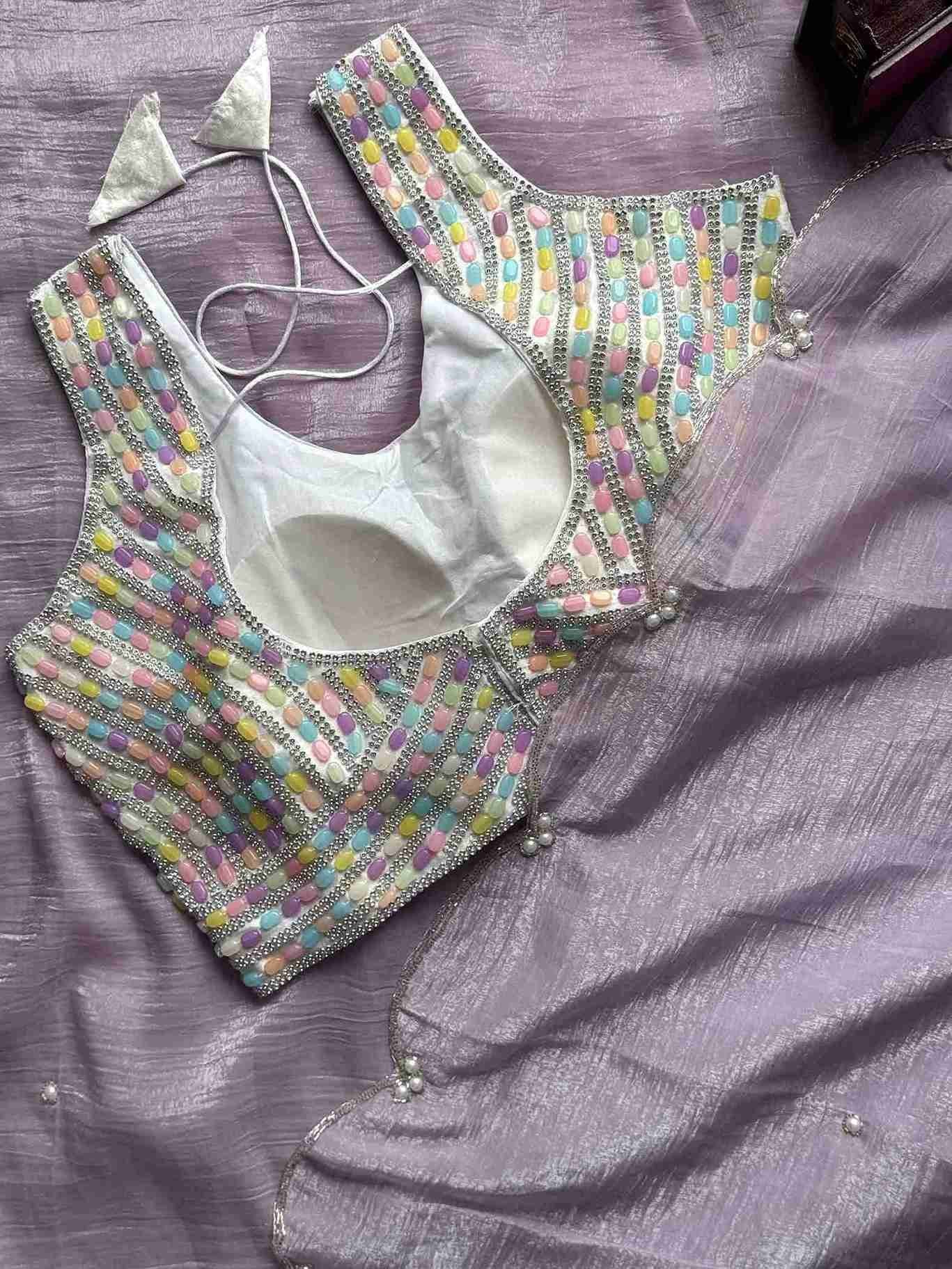 Blouse :- Stitched Blouse Fully Multicolour Pearls Work