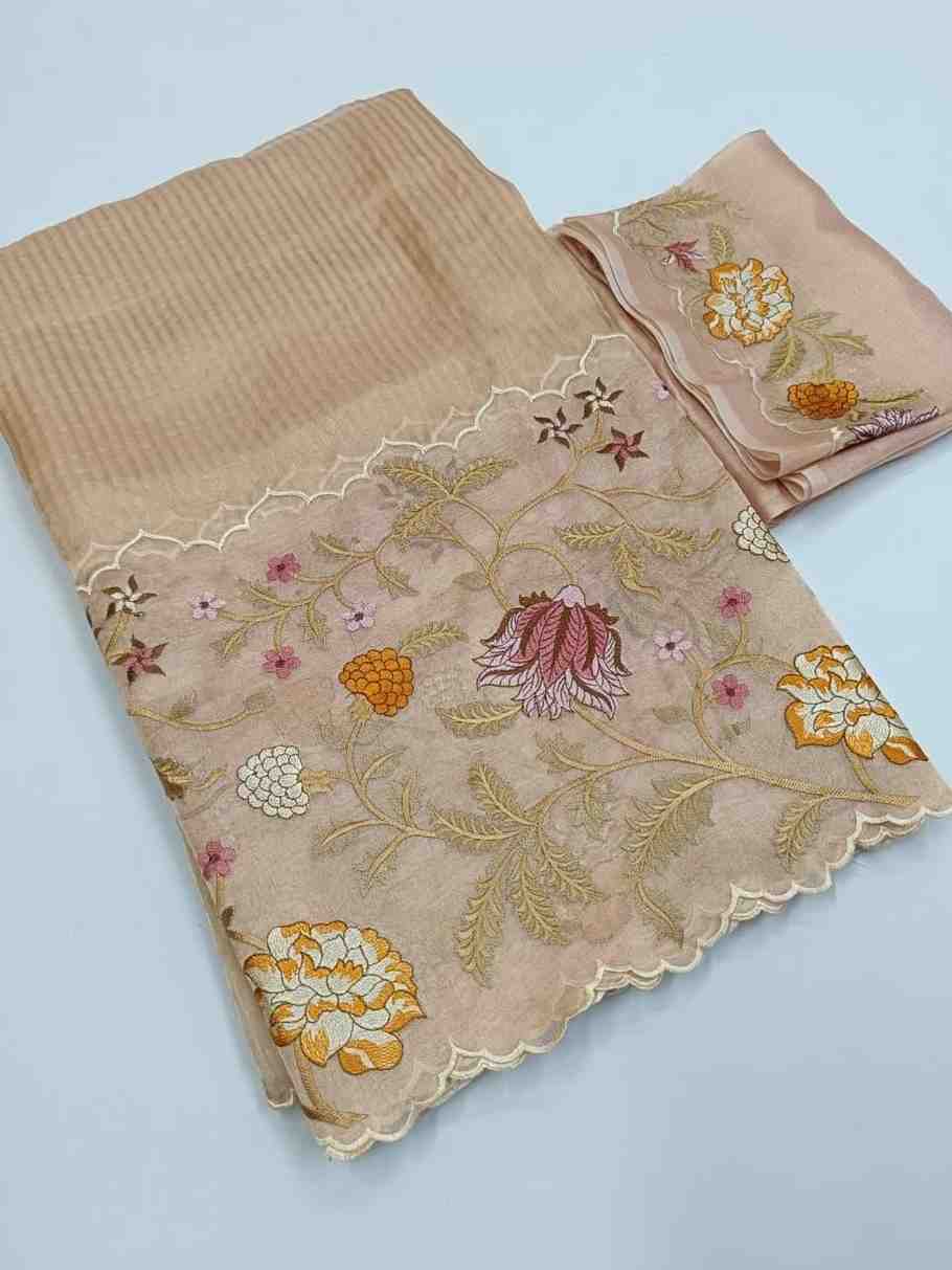 Kora Organza Sarees With Floral Embroidery Work Border Pallu