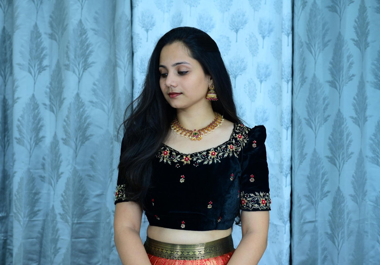 Velvet Maggam Work Blouse With Duppata