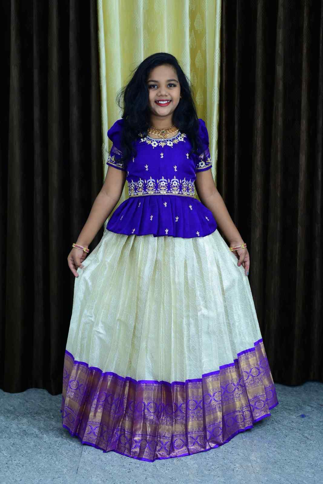 Full Stitched Half Saree Set With Heavy Cutdana Zardosi Hand Maggam Work
